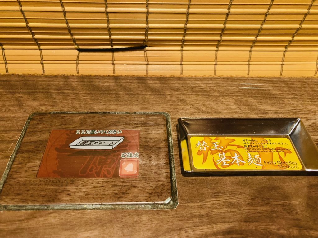 替え玉を注文するときも独自のスタイルで、専用のトレーを指定された場所に置くと