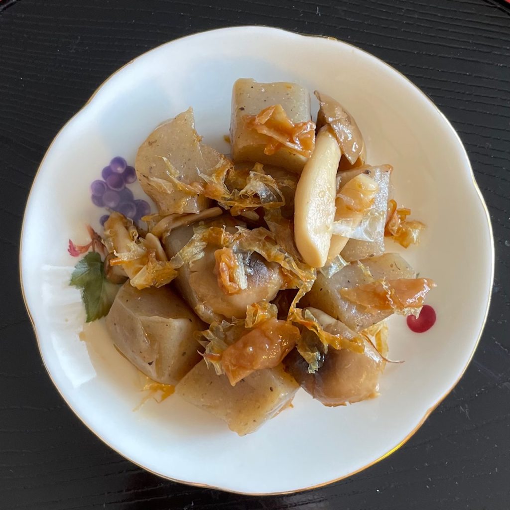 こんにゃくは、お好みの切り方で(私はスプーンなどで、ちぎります)。