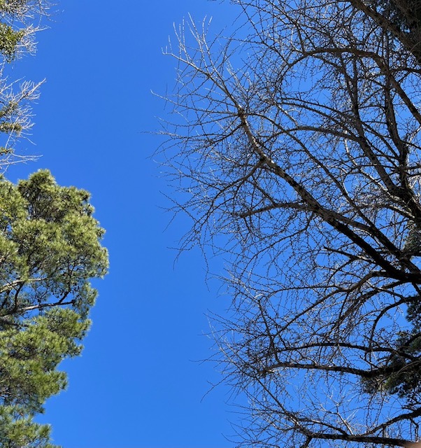 青空に映える冬枯れの木。